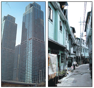 이 만화를 보자. 1960년대의 시사만화 ‘파고다 영감’이다. 시골 사람이 ‘서울 구경’을 왔다. 파고다 영감은 한복을 입은 시골 청년에게 국회의사당, 아카데미 극장, 중앙청 같은 서울의 ‘상징’들을 열심히 설명해 준다. 그러다 파고다 영감이 흙탕물에 빠지는데, 시골 청년은 그 모습에도 ‘히야’라는 탄성을 내지른다.