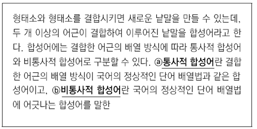 2. 다음은 합성어에 대한 설명이다. ⓐ와 ⓑ에 대한 예시를 바르게 제시하지 못한 학생은 누구인지 말해 보시오.