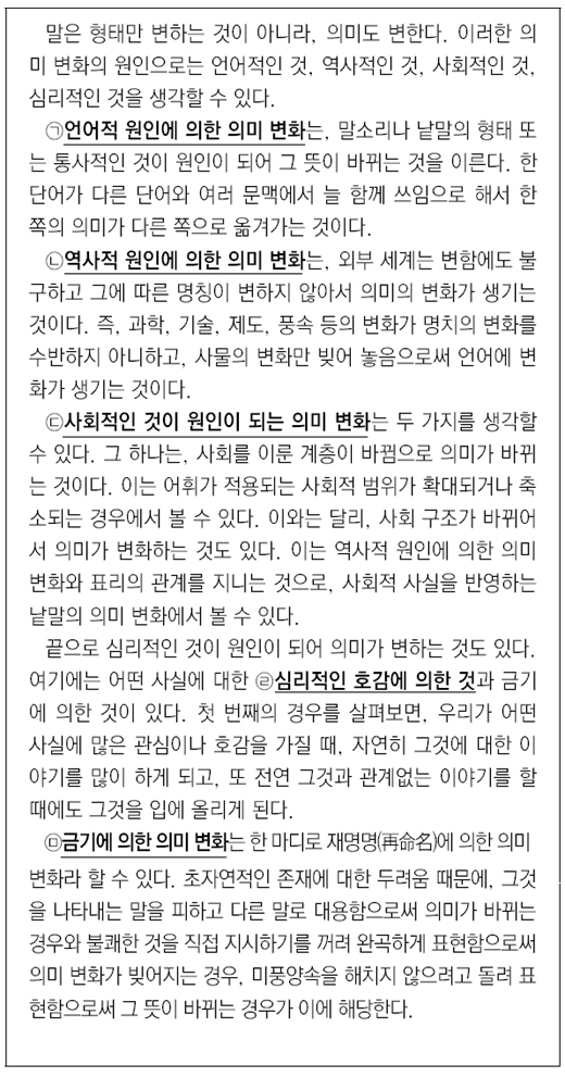 3. 다음 글을 잘 읽고, 언어의 의미 변화에 대한 예를 잘못 설명한 학생을 고르고, 그 이유를 설명하시오.