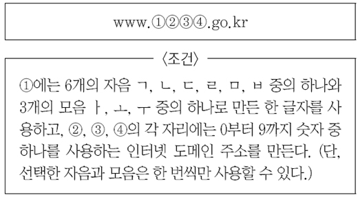 위 <조건>을 만족하는 인터넷 도메인 주소는 모두 몇 가지인지 말해보시오.