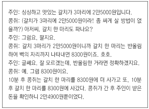 (2) 갈치 한 마리 값을 계산할 때, 반올림하여 십의 자리까지 나타내면 주인의 손해는 얼마인지 구하시오.