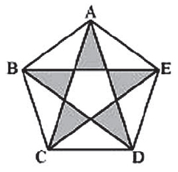 3. 정오각형의 대각선을 모두 그리고 정오각형의 각 변을 지우면 별 모양이 되는데, 피타고라스학파의 회원들은 이 별 모양의 정오각형 작도를 발견하고 이 도형의 아름다움에 반해 교단의 휘장으로 채택하였다고 한다. 피타고라스학파의 사람들이 여러 도형 중에서 왜 정오각형을 택하였는지에 대하여는 두 가지 설이 있다. 하나는 당시 사람들이 우주의 상징으로 믿었던 정십이면체의 각 면이 정오각형이었기 때문이라는 설이고, 다른 하나는 그들이 정오각형을 작도할 줄 알았다는 사실을 자랑스럽게 여겼기 때문이라는 설이다. 오른쪽 그림과 같은 정오각형의 한 변의 길이가 1이라 할 때, AB:AC의 길이의 비를 구하시오. (단, n≒2.236)