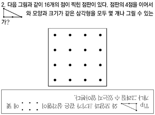 | 여러 가지 상황에서 문제를 스스로 만들어 보거나 다양한 방법으로 해결하고자 하는 노력 및 새로운 문제로 바꾸어 보고자 하는 창의적인 해결 활동입니다. 학생 스스로 사고하고 추론하여 문제를 해결하고, 다양한 해결 방법을 궁리해 봅시다. |