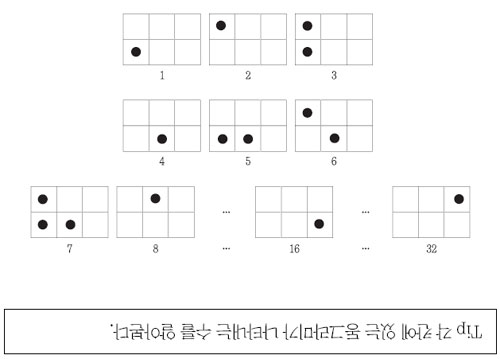 1. 다음은 1부터 32까지의 자연수를 어떤 규칙에 따라 그림으로 나타낸 것이다. 이때, 30을 그림으로 나타내어라.