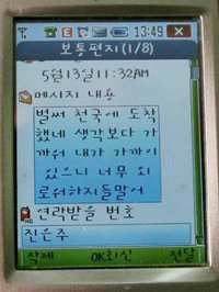 여기까지 생각이 미치자 울컥 눈물이 솟았다. 그는 휴대전화 액정에 떨어져 내리는 눈물을 연신 닦아내며 답신 메시지를 보냈다.