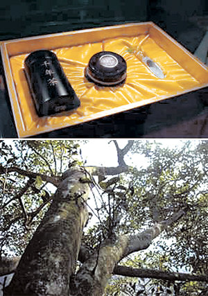 오 씨가 곡우 무렵인 4월 하순 새순을 따 이달 초 정성 들여 제조를 끝낸 이번 차는 부드러운 맛과 깊은 향이 일품. 또 이 차는 별도 주문 제작한 나전칠기 차함과 차통, 순금 20돈으로 장식한 찻숟가락 등과 함께 경매에 부쳐졌다.