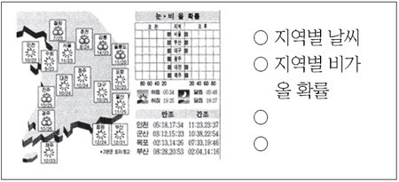1. 다음은 신문에 실린 날씨 관련 자료입니다. 이 자료를 보고 알 수 있는 사실을 두 가지만 더 찾아 쓰세요.