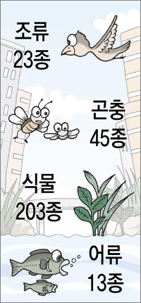 이 밖에 개통 뒤 올해 5월까지 조류 23종, 곤충류 45종, 식물류 203종이 살고 있는 것으로 관찰돼 청계천이 도심과 한강을 잇는 생태 통로로 발전할 가능성을 보여 줬다.