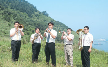 최근 제주를 찾아 임현수(베이스 트롬본) 김응주(튜바) 고창우(호른) 오기봉(트럼펫) 송용준(트럼펫) 씨 등 제주시향 금관 5중주 단원들과 함께 별도봉 오름에 올랐다. 바다가 내려다보이는 오름에서 이들은 “바람의 고향인 제주가 관악(wind) 페스티벌을 여는 것은 피치 못할 인연”이라고 입을 모았다.