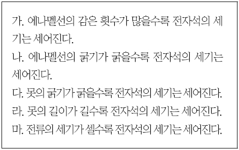 2. 에나멜선의 감은 횟수에 따라 전자석의 세기가 어떻게 달라지는지 알아보기 위해서 실험을 할 때 같게 하여야 할 조건은 무엇인가요?