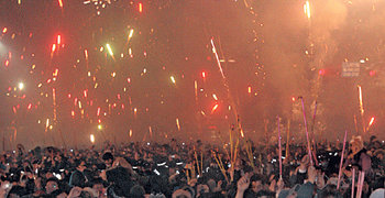 이날 시민 10만여 명이 지하철 1호선 종각역 주변에 몰려들었고, 거리의 사람 10명 중 8명꼴로 폭죽을 들고 다니며 터뜨렸다.