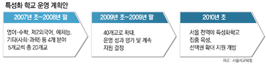시교육청은 2009년 특성화학교를 40개 고교로 늘리는 등 서울 전 지역에서 특성화학교를 집중 육성하게 된다.