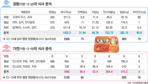 분석 결과 경환이는 열량, 단백질뿐만 아니라 칼슘, 철분, 비타민A 등 거의 모든 영양소가 부족한 상태였다.