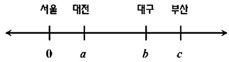 고속도로를 수직선 위에 대응시킨 후 서울에서 각 지역까지의 거리를 나타내면 다음과 같다.