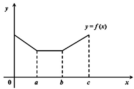 이때, 모이는 장소를 x라 하고, x에서 각 지역까지 거리의 합을 f(x)라고 하면, f(x)=lxl+lx-al+lx-bl+lx-cl 이므로 아래 그래프에서 a≤x≤b일 때, 최소값을 갖는다.