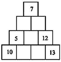 8. [측정] 길이가 1cm, 4cm, 7cm인 막대가 각각 한 개씩 있습니다. 이 막대를 이용하여 <보기>와 같이 5cm, 3cm를 측정할 수 있습니다. 1cm에서 13cm까지 가운데 cm 단위로 측정할 수 없는 길이를 모두 찾아 더하면 몇 cm입니까?
