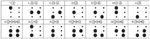 점자는 6점이 한 칸을 이루는데 이 칸들이 연결되어 한 단어를 만듭니다. 앞으로 설명할 점자는 읽을 때 점자 모양을 기준으로 설명합니다. 이후의 설명에서 번호는 아래의 <예>를 따릅니다.