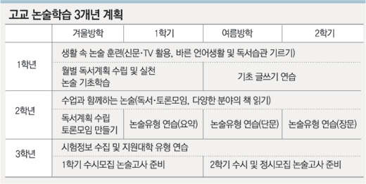 3학년이 되면 수능의 부담이 커 논술을 준비할 시간이 없다. 이때 부족한 배경지식을 늘리기 위해 단기간에 요약자료를 이용해 공부하면 획일적인 답안이 나올 수밖에 없다. 그 때문에 1, 2학년부터 꾸준히 논술에 관심을 기울이고 준비한 학생이 유리하다.