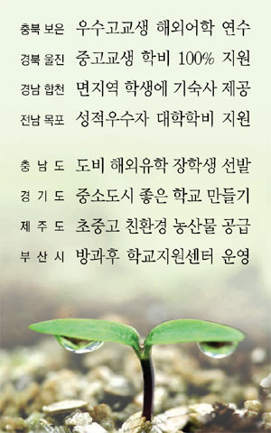 도지사, 시장, 군수 모두가 교육 문제에 나서는 것은 기업 유치와 인구 감소를 막기 위해서는 지역 교육 활성화가 꼭 필요하다는 사실을 깨달았기 때문이다. 주민들의 반응도 좋아 자치단체장들은 앞 다투어 교육정책을 개발하고 있다.