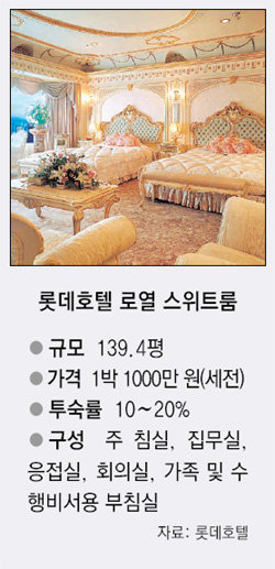 신라, 워커힐, 웨스틴조선, 롯데, 리츠칼튼, 메리어트 등 규모가 큰 호텔에는 로열 스위트룸, 혹은 ‘프레지덴셜 스위트룸’이 한두 개씩 있다. 욕실이 딸린 침실과 응접실 등이 하나로 이어진 스위트룸 가운데 가장 비싸고 좋은 방이다.