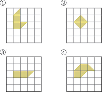 Tip. face는 (입체 도형에서의) 면, sum은 (숫자들의) 합이라는 뜻입니다. 정육면체에서 opposite side에 있다는 말은 서로 마주보고 있다는 뜻이죠? 이때 “They are parallel(이들은 서로 평행하다)”이라고 할 수도 있답니다. Tip. rotate는 회전하다, turn over는 (무엇을) 뒤집는다는 뜻입니다, 뒤집다에는 flip over란 표현도 있지요. 뒤집지 않고 움직이고 회전했을 때 위의 모양에 들어맞는(belong) 조각이 아닌 것을 찾으면 되겠죠? Tip. arrange는 정렬하다라는 뜻입니다. 여러 가지 다른 모양의 도형의 크기를 비교하는 방법에는 어떤 것이 있을까요? 이 그림들이 모눈종이 위에 그려져 있다는 것에 주목하세요. 가만히 들여다보면 더 작은 단위가 보이나요? Tip. vegetation은 식물, kin은 일가친척, cabbage는 양배추란 뜻입니다. 단어를 하나하나 읽으면서 한 단어와 그 뒤에 따라오는 단어의 관계를 생각해 보세요. 이 관계들이 각 보기에서 유사해 보이나요? 다른 것이 있다면 왜 그럴까요?