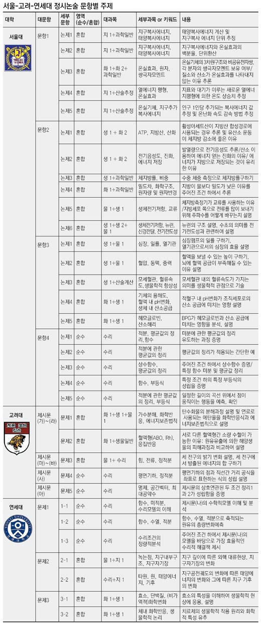 ■ 서울대, 고려대, 연세대 자연계 논술 출제경향