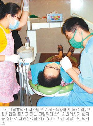 또 그린닥터스는 2006년 7월부터 정부의 도움 없이 부산진구의 저소득층을 대상으로 종합의료서비스 시스템인 ‘그린홈닥터·그룹홈닥터 제도’를 도입해 무료로 시행하고 있다.