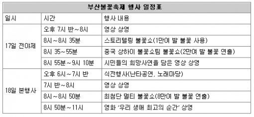 축제 내용은 부산불꽃축제 홈페이지(www.bff.or.kr) 참조.
