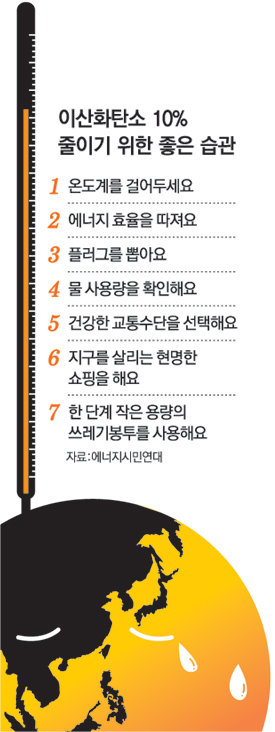 하지만 이산화탄소 배출을 줄이는 우리의 작은 실천이 모이면 큰 효과를 낼 수 있다. 에너지시민연대가 제안하는 실천 방법을 통해 생활 속에서 이산화탄소를 줄이는 방법을 알아본다.