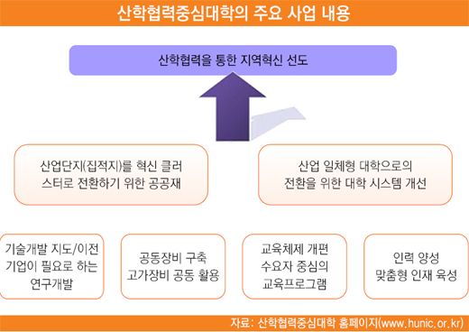 《많은 대학이 국내외 여러 기업과 협력관계를 맺고 다양한 교육 프로그램을 통해 학생들에게 특화된 기술과 노하우를 전수해주고 있다. 이런 대학은 특정 산업에 필요한 인력을 양성하는 것을 목표로 실무 중심의 교육과정을 제공하는 것이 특징이다. 기업과의 활발한 정보교류와 인적 네트워크 구축을 통해 학생들의 취업 경쟁력을 높여주는 ‘산학협력 중심대학’에 대해 알아보자.》