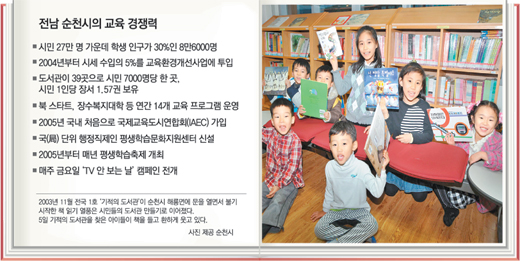 순천시 도서관운영지원계 허재원(44) 씨는 “2010년까지 도서관을 54곳으로 확대하고 시민 1인당 2권의 장서를 확보해 선진국 수준의 도서관 도시로 우뚝 설 것”이라고 말했다.