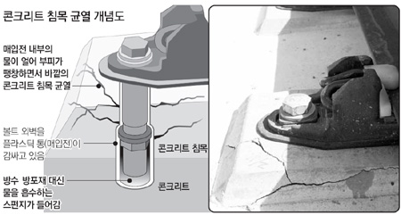 이번 사고는 이 공간에 방수·방포재 대신 물을 흡수하는 스펀지가 들어간 것이 원인. 최근 추위로 물이 얼면서 부피가 커져 침목에 균열이 간 것으로 알려졌다.