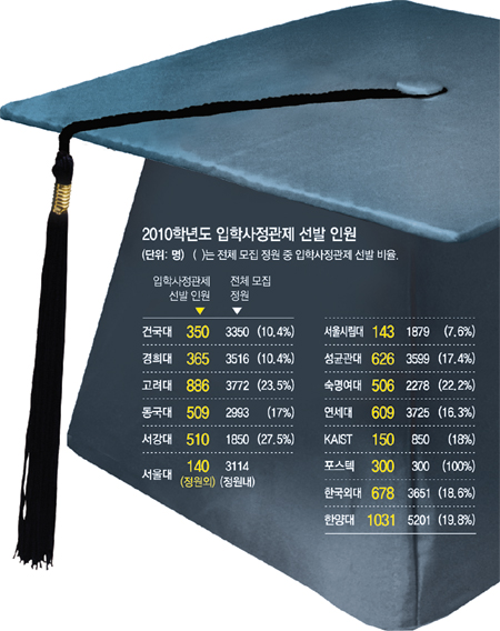 서울 소재 사립대학들은 올해 300∼1000명의 학생을 입학사정관제로 선발하겠다고 잇달아 발표했다. 고려대 서강대 숙명여대는 정원의 20% 이상을 뽑겠다고 한다.