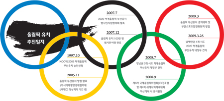 이런 가능성을 전제로 2007년 7월에는 부산지역 260여 개 시민사회단체로 ‘올림픽 유치 범시민지원협의회’가 발족됐고, 12월에는 올림픽 유치 120만 명 서명을 달성해 시민의지를 모았다. 지난해 7월에는 대구 울산 경남·북 등 인근 4개 시도지사의 부산유치 대정부 건의문 발표로 동남권 상생발전에 힘이 실렸고, 지난달에는 경남 전남 광주 등 남해안권 시 도지사의 부산유치 건의문이 채택되기도 했다.