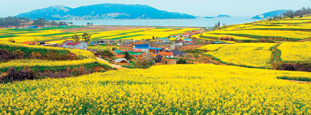 득량만이 한눈에 내려다보이는 마을 앞에는 13.2ha에 달하는 유채 밭이 드넓게 펼쳐져 있다. 노랑 물감을 풀어놓은 듯한 유채 밭을 보기 위해 지난달에는 관광객과 사진작가 등 1만여 명이 마을을 찾았다. 이달 초 만개한 유채꽃은 지고 지금은 파릇파릇한 줄기에서 유채씨(종자)가 익어가고 있다. 종자는 다음 달 중순 콤바인으로 수확한다. 친환경 바이오디젤 연료로 쓰기 위해서다. 이 마을 최귀홍 이장(53)은 “지난해 처음 22가구에서 유채씨 16t을 수확해 t당 40만 원씩 바이오디젤 생산업체에 납품했다”며 “유채가 관광상품뿐 아니라 농가의 새로운 소득원이 되고 있다”고 말했다.