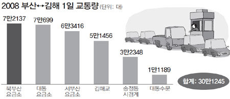 부산시는 부산과 김해 경계지점의 교통량도 지난해 기준 1일 평균 30만1245대로 이를 정도로 주민생활권이 부산에 속해 있다고 덧붙였다. 현재 건설 중인 부산∼김해 경전철 공사가 완료되는 2011년경에는 동일 생활권으로 더욱 밀착될 수밖에 없다는 게 부산시의 견해다. 부산시 관계자는 “향후 행정구역 개편은 ‘하향 평준화’가 아니라 부산시가 남부 경제권의 핵심 역할을 할 수 있도록 추진돼야 한다”고 말했다. 그러나 김해시 관계자는 “옛 김해지역인 강서지역이 다시 편입돼야 한다는 게 지역 주민들의 정서”라며 “조만간 김해시의 공식적인 견해가 나올 예정”이라고 밝혔다.