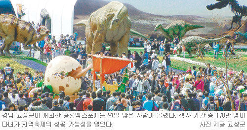 경남 고성군이 개최한 ‘2009 경남고성공룡세계엑스포’가 7일 막을 내렸다. 3월 27일부터 73일간 열린 이번 엑스포에는 총 170여만 명이 다녀갔다. 이는 고성군민(5만6000명)의 30배. 고성군은 “대성공”이라고 평가하지만 미흡한 부분도 있었다.