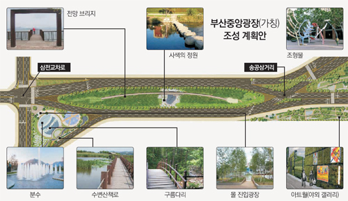 부산에도 서울 광화문광장 형태의 대형 도심광장이 조성될 것으로 보인다. 부산시는 2013년까지 부산진구 부전동 삼전교차로∼양정동 송공삼거리 중앙로 730m 구간을 확장해 ‘부산중앙광장’(가칭)을 조성할 계획이라고 5일 밝혔다. 이 구간의 도로 너비를 35m에서 100m로 확장하면 8차로가 12차로로 넓어진다. 도로 중앙에는 길이 442m, 너비 44m 규모의 광장이 생긴다.