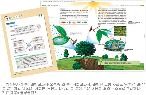 금성출판사의 중1 국어교과서 저자인 서울 봉원중학교 박성희 교사(31·여)는 “교과서 앞부분엔 상세한 설명이, 뒷부분엔 단원의 핵심이 압축돼 있다”면서 “학습 스타일이나 필요에 따라 앞, 뒷부분을 유연하게 활용하면 학습효과를 배가시킬 수 있다”고 설명했다.