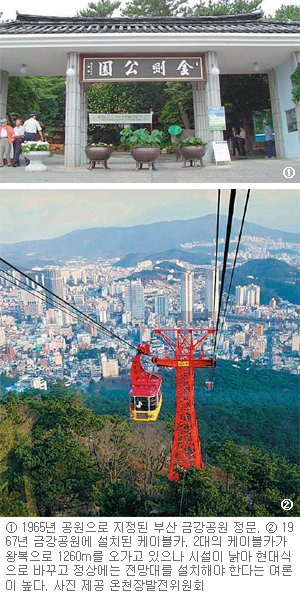 “30년 이상 된 매점을 정비하고, 케이블카도 현대식으로 바꾸자.” 1910년 국내 최초 온천으로 개발된 동래온천과 1965년 공원으로 지정된 금강공원 일대가 2000년 이후 쇠퇴하자 부산시민들이 “이대로 두면 안 된다”고 입을 모으고 있다. 그러나 개발에 대한 환경단체의 반발, 시설운영자의 이해관계가 얽힌 데다 관계기관의 무관심으로 대안 마련이 쉽지 않다.