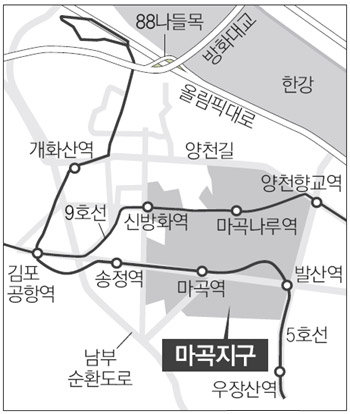 서울의 마지막 남은 대규모 미개발지인 강서구 마곡지구가 2005년 개발사업 구상 발표 이후 4년 만에 첫 삽을 떴다. 마곡지구 개발 사업은 강서구 마곡동과 가양동 일원 336만 m²(약 101만6000평)에 미래지식 첨단산업단지와 국제업무지구, 배후주거단지 등을 조성하는 장기 도시개발 프로젝트. 시는 27일 마곡지구 내 주거 및 국제업무용지인 ‘제1공구’ 154만 m²(약 46만5800평)에 대한 착공식을 열고 공사를 시작했다.