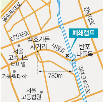 최근 경부고속도로 반포 나들목 진입로가 폐쇄된 이후 고속도로 진입로로 이어지는 사평로가 몸살을 앓고 있다.