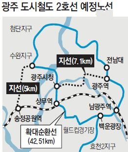 광주시가 지상고가 방식으로 건설될 도시철도 2호선 사업계획에 대해 시민의견 수렴에 들어간다. 광주시는 12일 “‘광주도시철도 10개년 기본계획’과 ‘도시철도 2호선 기본계획변경안’ 등을 도시철도건설본부 인터넷사이트(subway.gjcity.net)에 다음 달 1일까지 공개하고 주민의견을 접수 중”이라고 밝혔다.