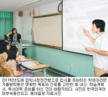 2011학년도 입시를 준비하는 학생이라면 이번 겨울방학 동안 명확한 진로와 희망을 고민해 계획서를 작성하고 보완하는 것이 좋다. 급조된 듯한 학습계획서는 면접에서 좋은 평가를 받을 수 없다.