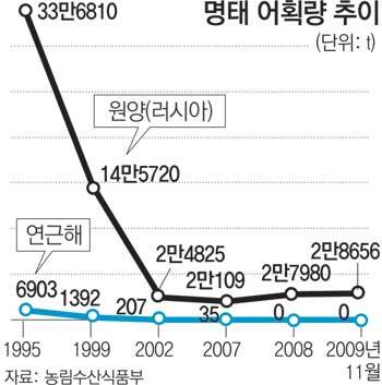 한편 농식품부는 당장 설을 앞두고 명태 값이 치솟을 수 있기 때문에 정부 비축분 381t을 조기 방출하고, 민간 비축분 1만3219t도 조기 출하를 유도하기로 했다. 농식품부 관계자는 “장기적으로 한-러 협력 확대와 방류 사업을 통해 명태를 안정적으로 공급할 수 있도록 하겠다”며 “동해에서 다시 명태가 잡히면 지역 경제와 식품산업이 활성화되는 효과도 거둘 수 있을 것”이라고 밝혔다.