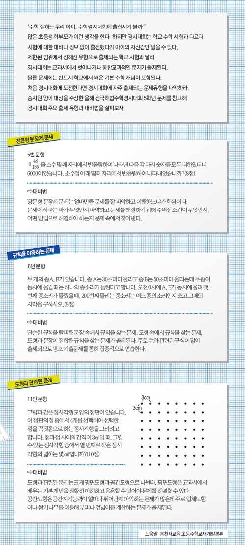《동아일보와 ㈜천재교육 공동 주최로 1월 실시된 2010학년도 제19회 전국해법수학경시대회에서 초등학교 5학년 대상을 수상한 경기 수원영동초교 6학년 송지원 양(12). 송 양은 지난해에도 같은 대회에 출전했지만 본선에 진출하지 못했다.