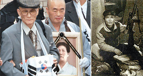 일본에서 ‘재일교포 차별 철폐’를 부르짖으며 야쿠자 조직원을 살해하고 무기수로 복역했던 권희로 씨가 1999년 가석방된 뒤 부산 김해공항을 통해 입국하고 있다. 당시 권 씨는 1998년 작고한 어머니 박득숙 씨의 유해를 안고 입국했다(왼쪽). 오른쪽은 1968년 일본 시즈오카 현의 한 온천여관에서 투숙객 13명을 붙잡고 인질극을 벌이던 모습. 동아일보 자료 사진 일본에서 야쿠자를 살해한 뒤 무기수로 복역하다 영구 귀국한 권희로 씨가 26일 오전 6시 50분경 부산 동래구 봉생병원에서 별세했다. 향년 82세. 그의 인생역정은 한일 간 질곡의 역사만큼 파란만장했다.