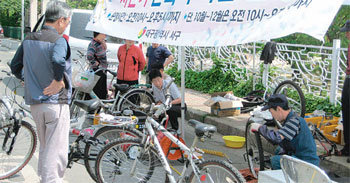 이 수리반은 서구가 올 들어 실시하고 있는 희망근로사업의 하나. 서구는 3월 초 중리동 상리공원에 ‘자전거수리센터’를 개설한 데 이어 매주 화요일에는 300가구 이상의 아파트단지를 찾아가고 수 목요일에는 각동 주민자치센터 앞에서 자전거 순회수리를 하고 있다. 현재까지 모두 800여 대를 수리했다. 수리센터 운영은 매주 월요일부터 금요일까지(공휴일 제외) 오전 9시∼오후 6시다. 공기주입 등은 무료이고 타이어를 교체하지 않아도 되는 펑크 등 경미한 수리는 1000원, 부품을 교체할 경우 부품원가는 이용자가 부담해야 한다.