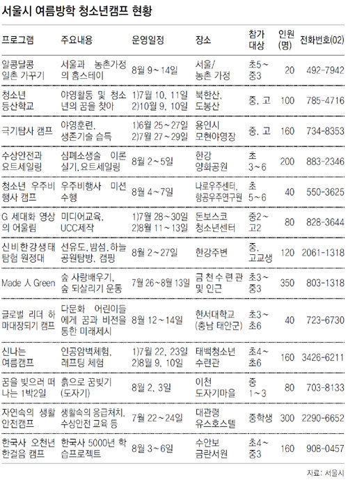 여름방학, 어떻게 하면 신나고 알차게 보낼 수 있을까. 특별한 계획이 없다면 서울시가 마련한 여름캠프에 관심을 가져보자.