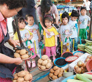 양동시장에서 장보기 체험을 하고 있는 어린이들이 야채와 과일을 구입하고 있다. 박영철 기자 skyblue@donga.com
